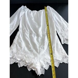 TJD Romper White Crochet Off Shoulder Jumpsuit