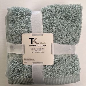 TK Seafoam Green Wash Cloths. 100% Cotton. Set of Four 13x13 inch. Home Luxury. Pet and smoke free environment.