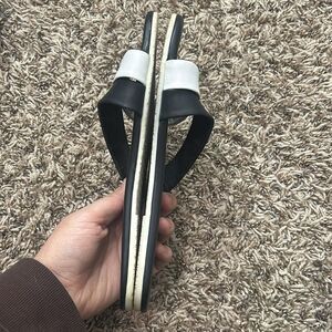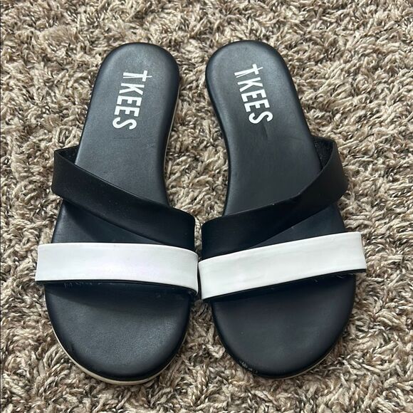 TKEES Kat Strap Leather Sandals Flats Black White Sz 7 some light scuffs and wear shown some inside threads in the straps still super cute good condition perfect casual spring summer sandals Always open to offers bundle and save more! Always fast shipping!