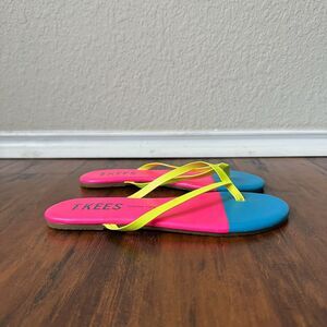 TKEES Neon Tips Flip Flop Sandals Womens EU 37 US 6 Pink Blue Leather Thong