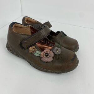 TKS Girls Donna Mary Janes Brown Shoes size 8 22312 3D Flowers