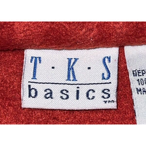 This vintage TKS winter vest is the perfect addition to any baby or toddler's wardrobe. Made of soft fleece material, it is perfect for keeping your little one warm during the colder seasons. The vest features a zippered closure and zippered pockets, as well as a chest pocket, all in black contrast trim. The red color and solid pattern make it a great choice for holiday or casual occasions. It is easy to care for, preshrunk, and non-iron, making it a convenient option for parents. This unisex vest is a size 3T and is machine washable. Perfect for winter and Christmas, this vest is a must-have for any baby or toddler's wardrobe.