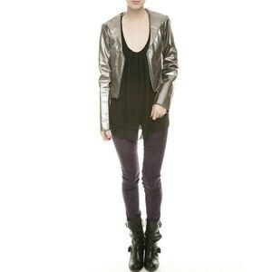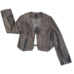 *TL* Tiffany Lawrence GIGI Leather Women's Jacket Pearlized Gunmetal Size Large Shawl collar, zip front jacket with raw edge