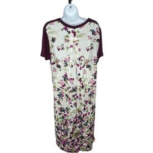 T.la Anthropologie Tunic Dress Cover Up XS Pullover Hi Low Floral Contrast Slits