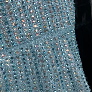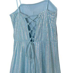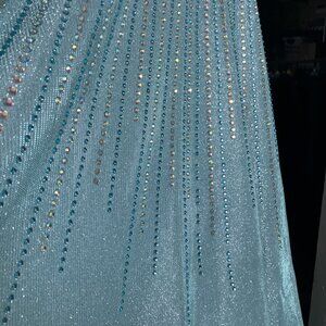 TLC Say Yes To The Prom 5 Blue Silver Rhinestone Bling Strapless Lace Up Dress