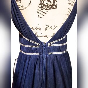 Take the plunge. A deep V-neck dives toward Sparkling rhinestones that wind around the ruched top of this gorgeous gown from Say Yes to the Prom.