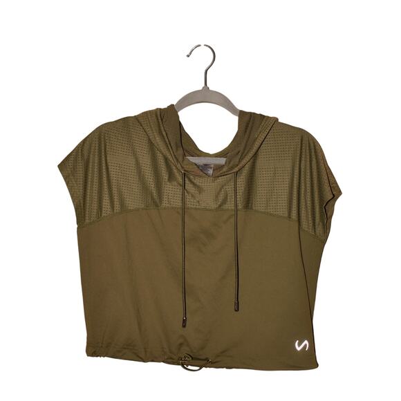 TLF $48 Green Short Sleeve Rise Crop Hoodie Breathable Mesh Adjustable Hem Large
