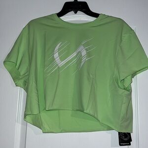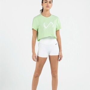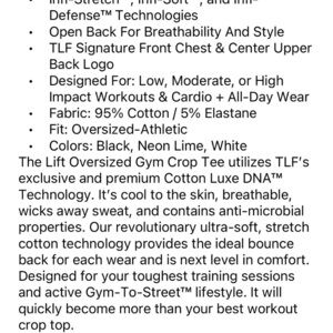 New with tags, TLF Lift Oversized Gym Crop Tee in Neon Lime White in size Large with raw edge. Shirt is soft and cute. 95% cotton, 5% elastane.