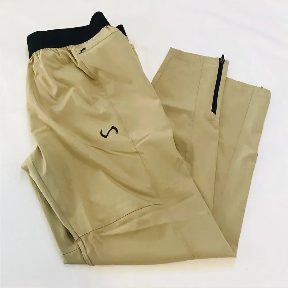 Cream colored pants with an elastic waist. Great for working out or just wearing around.