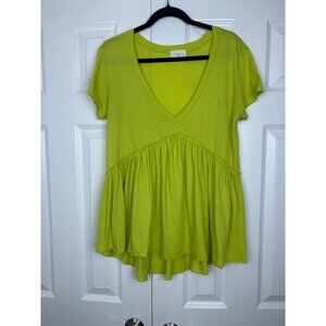 T.La Babydoll Tunic Tee Top V Neck Flowy Womens Size S Chartreuse Green Short Sleeve