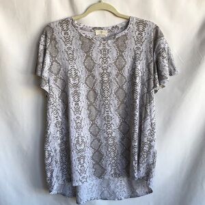 T.La python / snakeskin print flutter sleeve high-low top, size L. Good preowned condition.