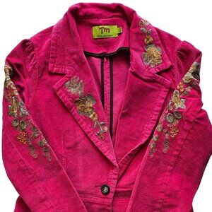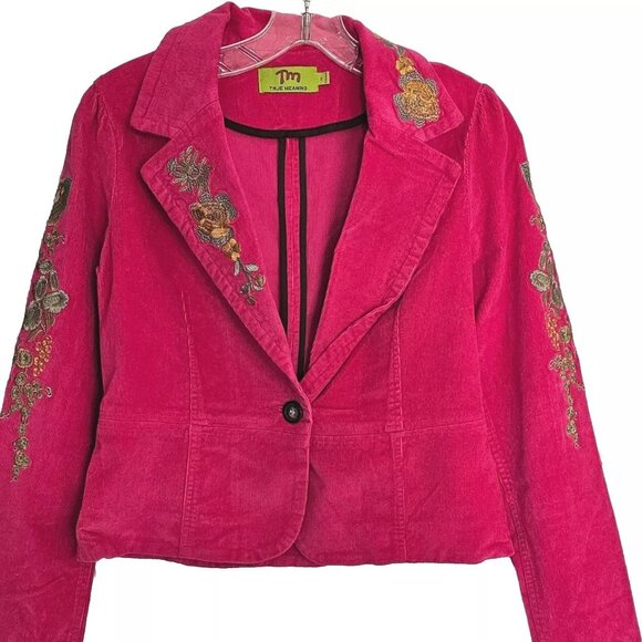 TM True Meaning Womens Jacket, Blazer Coat Corduroy, Embroidered Jacket, Medium