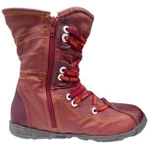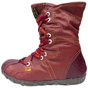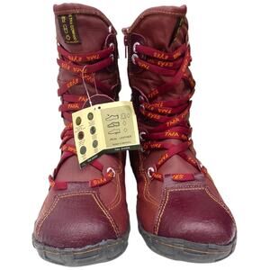 TMA EYES Dark Red Burgundy Snake Accent Leather Combat Boots Women's 9.5
