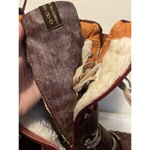 TMA EYES German Women’s Red Leather Boots Lace Up Zipper Faux Fur Size 8 US In pre-owned condition, some wear on boot material. Please see all pictures for condition and wear.