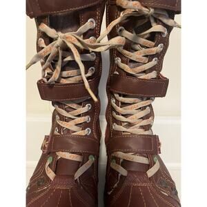 TMA EYES German Women’s Red Leather Boots Lace Up Zipper Faux Fur Size 8 US
