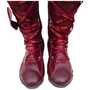 TMA EYES Tall Leather Distressed Moto Boots Women's size 9 Burgundy Orange
