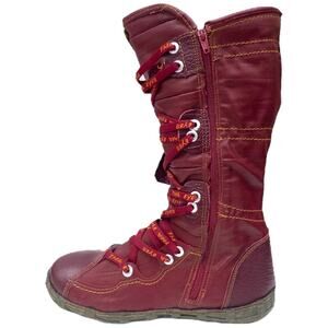 TMA EYES Tall Leather Distressed Moto Boots Women's size 9 Burgundy Orange