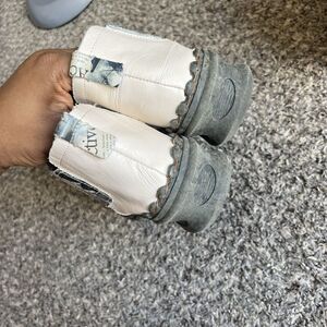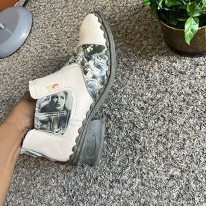 TMA Eyes Boots Contrast Cream Gray Leather Ankle Boots Size 41 US 9 Zip Chunky