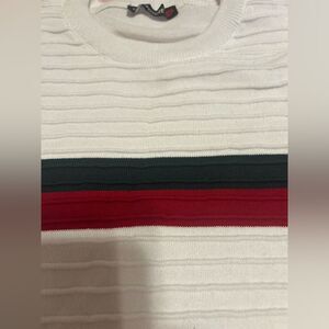 TM Exposure Classic Crew Neck Sweater in White Green and Red Stripes