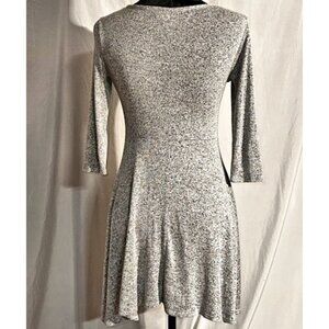 Cute knit dress in gray from TMG, New York. Wear this to work with boots, then add pumps and go out for evening. Very versatile, very comfortable. It measures 15 inches across the shoulders, 13 inches at the waist, 15 inch sleeves and the dress is 30 inches long.