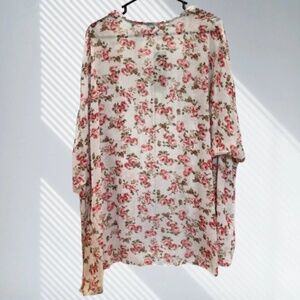 TMG New York Women's 1X White Pink Floral Kimono Cover Up