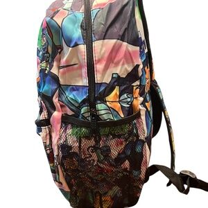 Backpack: 15"H x 12"W X 6" deep. inside Chromebook pocket & 1 zipper pocket. 2 mesh water bottle pockets on sides. Adjustable straps on back and carry strap on top(or to hang).