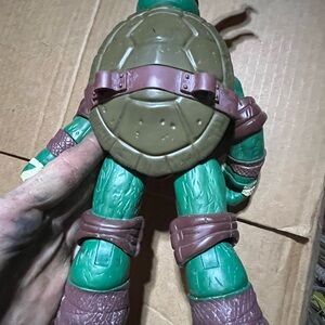 Dynamic green turtle figure with brown accessories and a yellow chest.