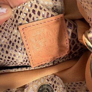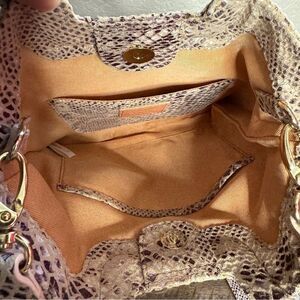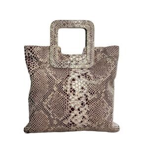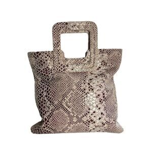 TMRW Studio taupe snakeskin embossed leather square handle tote bag like new