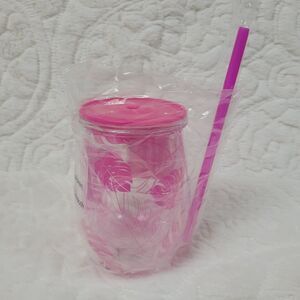 T-Mobile Tropical Tumbler Lid Straw Pink Tropical Palm Leaf Design Plastic New