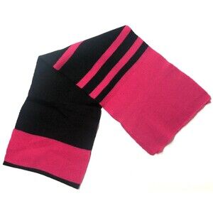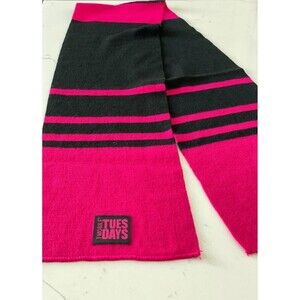 This T-Mobile branded scarf for women showcases a combination of solid and striped designs in magenta pink and black. Crafted from knit fabric, it offers versatile wear and is accented with the T-Mobile logo. Ideal for use during winter, fall, and spring, this one-size scarf blends style with seasonal functionality.