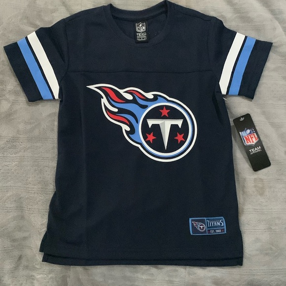 Mesh TN Titans practice jersey. Should be worn with a shirt underneath. Size 8. #60, but no last name. Tags still attached. My son is almost 9, and this was a little snug on him so he wouldn’t wear it. So in my case, it was a little small but it is size 8 on the tag. Only worn once to try on. Perfect condition.