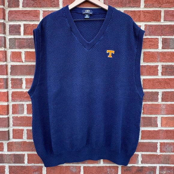 TN Vols Embroidered Waffle Knit Sweater Vest Mens XXL Navy VTG USA Made