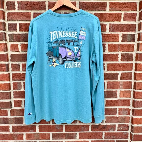 TN Vols Pocket Tee XL Teal Blue Dog Beetle Bus Graphic Collegiate