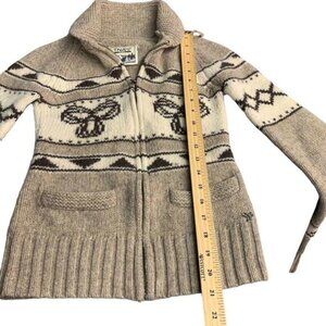 Crafted from 100% wool, this sweater is perfect for the winter and fall seasons. The long sleeves offer added warmth, making it perfect for casual occasions. The sweater is in size small. (See note below)Don't miss out on this cozy and stylish cardigan.