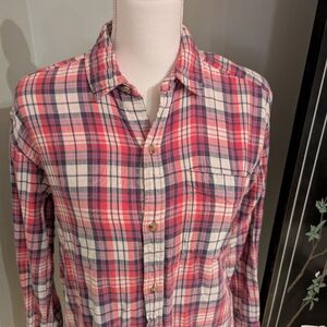 TNA Aritzia Shirt Womens Small Pink Gray Plaid Flannel ButtonUp Top Pockets 129
