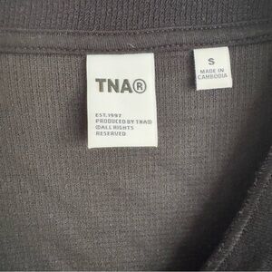 TNA Aritzia Waffle Knit Cropped V Neck Button Long Sleeved Top Size Small
