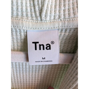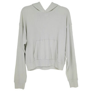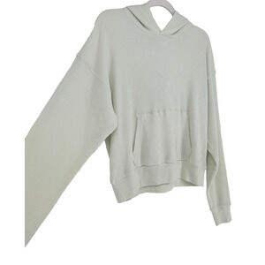 TNA Aritzia Womens Mint Green Hooded Waffle Lounge Athleisure Long Sleeve Top MD