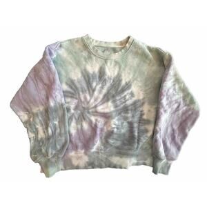 TNA Cozy AF Fleece Sweatshirt 1 Tie Dye Green Purple Aritzia XS S Oversized