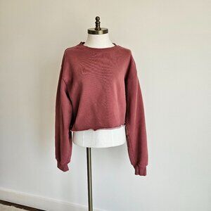 TNA Cozy Fleece Perfect Red Cropped Crewneck Sweater
