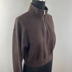 TNA Cozy Perfect Brown Crop Sweatshirt Fleece Half Zip Drop Shoulder Sz S Small