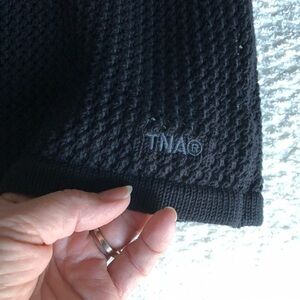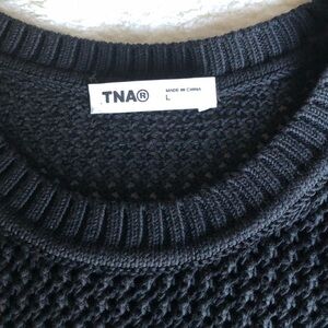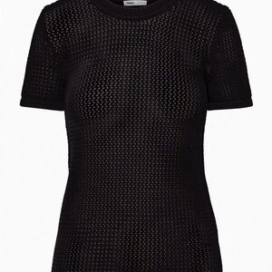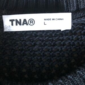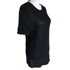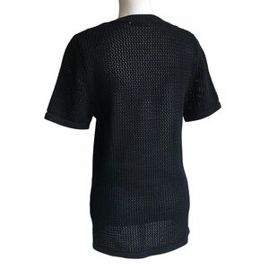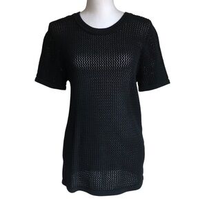 TNA Delamont Sweater Short Sleeve Open Knit Pattern Black Large