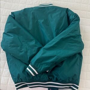Teal jacket featuring a striped collar. Classic TNA style.