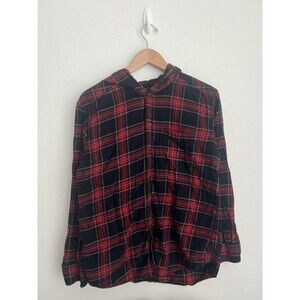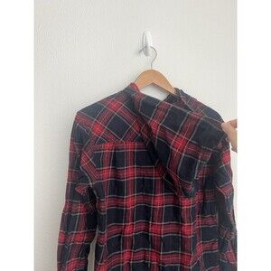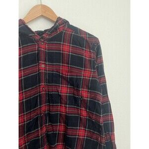 TNA Grunge Gothic Punk Red Black Plaid Button Up Hooded Flannel Shirt Small
