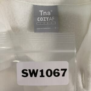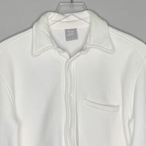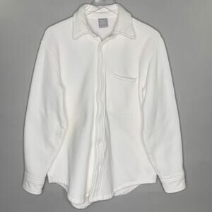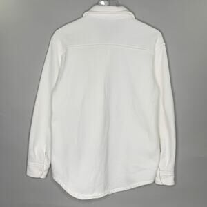 TNA L Womens White Cozy AF Fleece Boyfriend Shirt Oversized Button Front