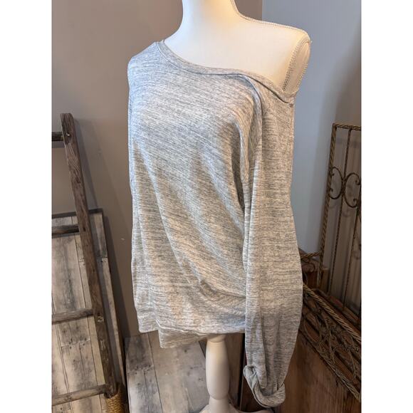 TNA Ladies Large Heather Gray Boat Neck Lightweight Athletic Top Off Shoulder