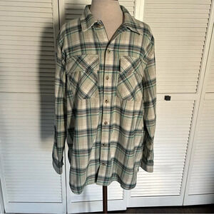 TNA Plaid Oversized Shirt button front flannel Fiona cream brown blue medium
