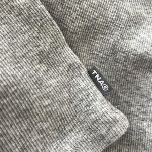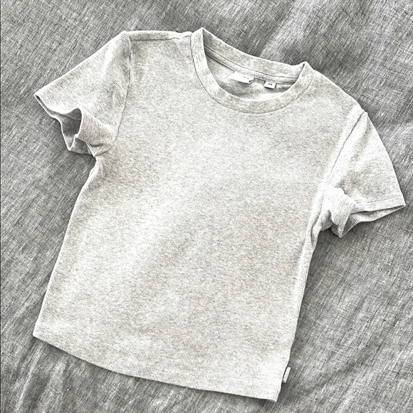 heather grey ribbed fabric in good condition; no flaws or imperfections size xs
