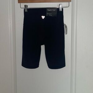 And made slightly longer, because options. These are high-rise bike shorts with our signature wide waistband for a smooth silhouette. They're made with TnaBUTTER— high-stretch, sweat-wicking fabric with a barely-there, buttery-soft feel.