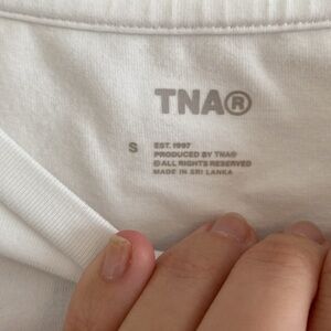Soft and comfortable TNA tee. Perfect for everyday wear. Classic white color for versatile styling. A cute staple closet piece