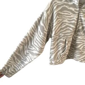 TNA • Animal Print Cropped Fleece Jacket in Gray/White